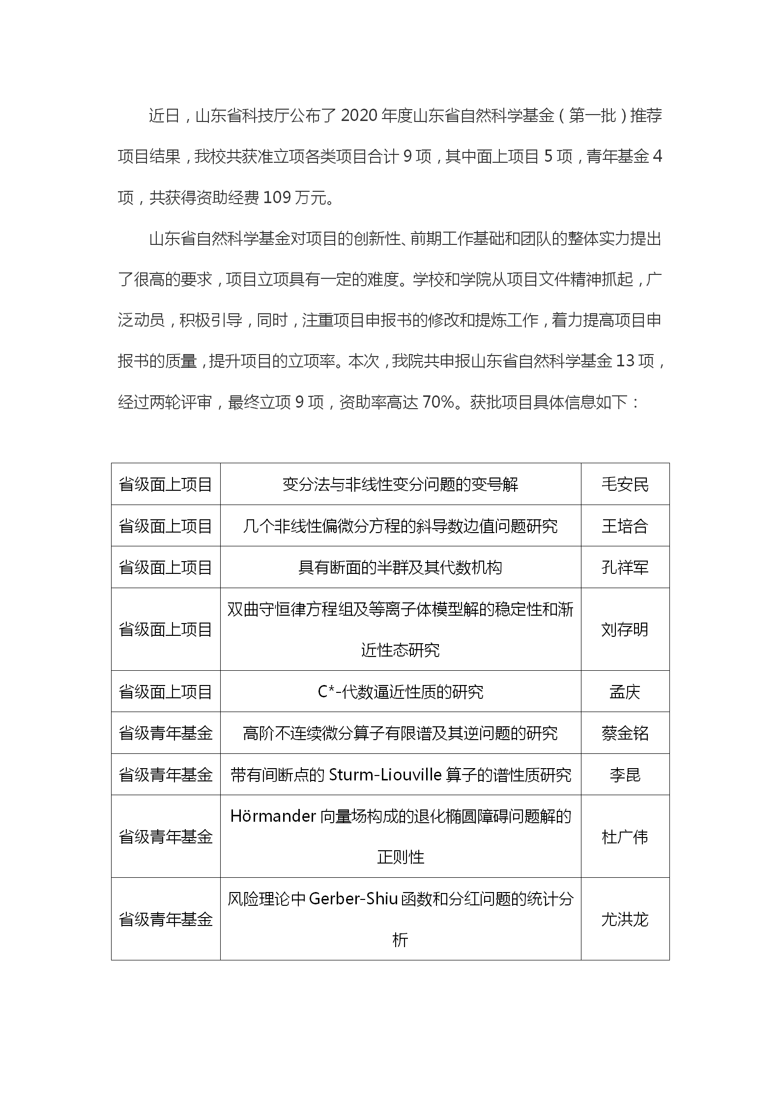 足球资讯网 9个项目获得山东省自然科学基金资助