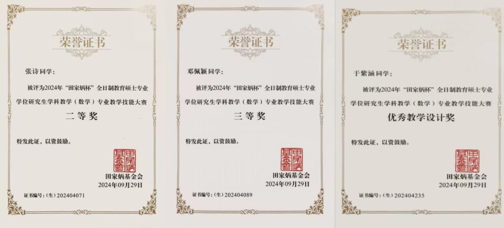 3名研究生进入决赛,张诗荣获二等奖、邓佩颖荣获三等奖、于紫涵荣获优秀教学设计奖,指导教师冯振举荣获“优秀指导教师”奖。