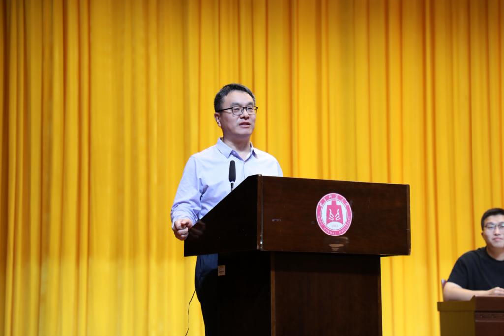 在师资力量、学科建设和科研创新等方面取得的卓越成就,并分享了众多杰出校友在教育、科研、企事业单位等领域的事迹。王院长勉励新生们以优秀校友为榜样,尽快适应大学学习节奏,潜心向学、积极创新,深入探索数学学科的内涵与价值,努力实现个人理想与服务社会的有机统一。