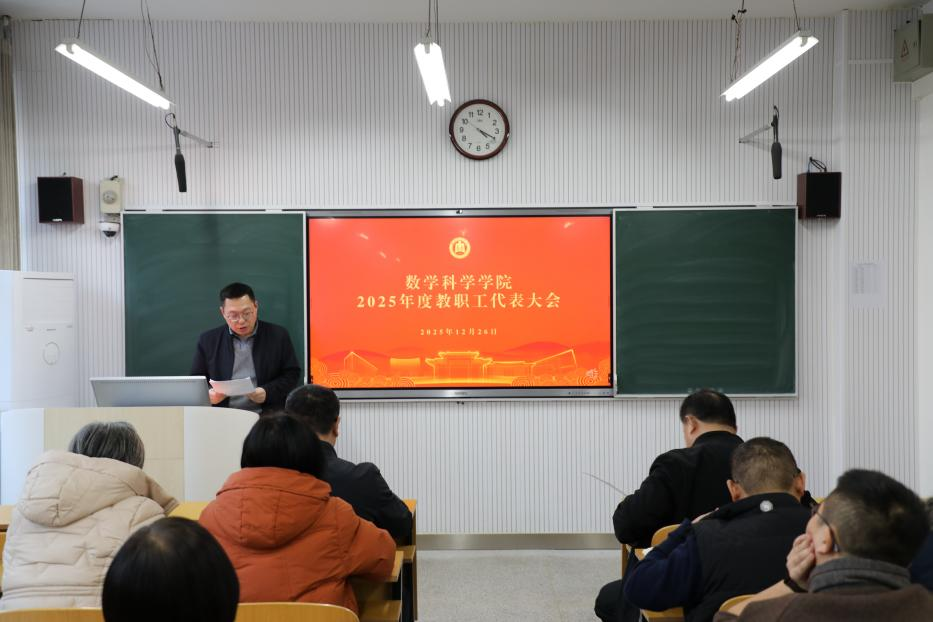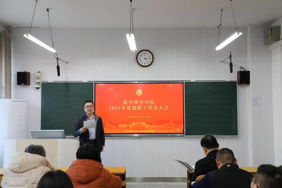 院长王培合作工作报告。他对足球资讯网 在党的建设、人才培养、科学研究、社会服务和文化传承等方面都取得的成绩进行详细总结,对在教学、科研、人才培养等方面的短板和不足进行深入的分析。王培合指出目前足球资讯网 正处于内涵发展的关键机遇期,机遇和压力并存,希望和挑战俱在。王培合对2026年度工作进行部署,他强调必须锚定战略目标,进一步深化教育教学改革,完善卓越人才培养体系;强化有组织科研,明晰研究特色与潜力,推动高水平成果产出;打造高水平师资队伍,优化创新发展生态;深化国际交流合作,全面提升学科国际声誉,为学校事业发展和国家基础学科建设注入强劲的数学力量。