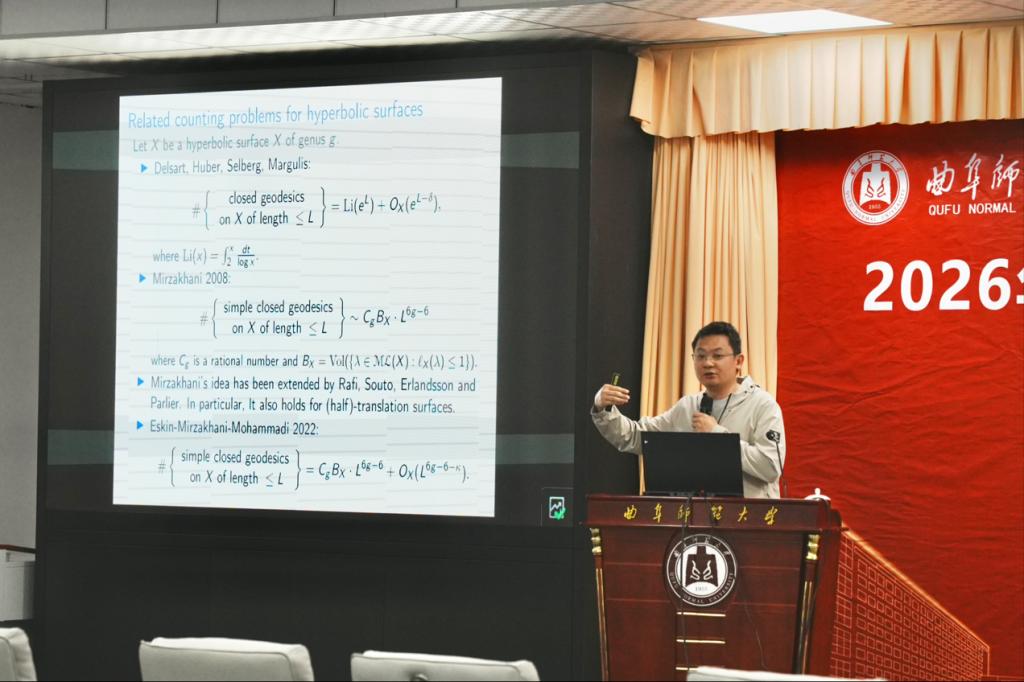 院长王培合主持。曲阜师范大学党委常委、组织部部长王明科代表学校致辞,向与会专家学者表示热烈欢迎,简要介绍了学校办学底蕴与数学学科建设成果,并指出复动力系统作为基础数学核心研究方向,在分析学、几何学、拓扑学等领域具有重要理论价值与深远影响。学校高度重视基础数学研究与高水平学术交流,期待以本次研讨会为纽带,加强与国内顶尖高校的学术合作,助力数学学科高质量发展。