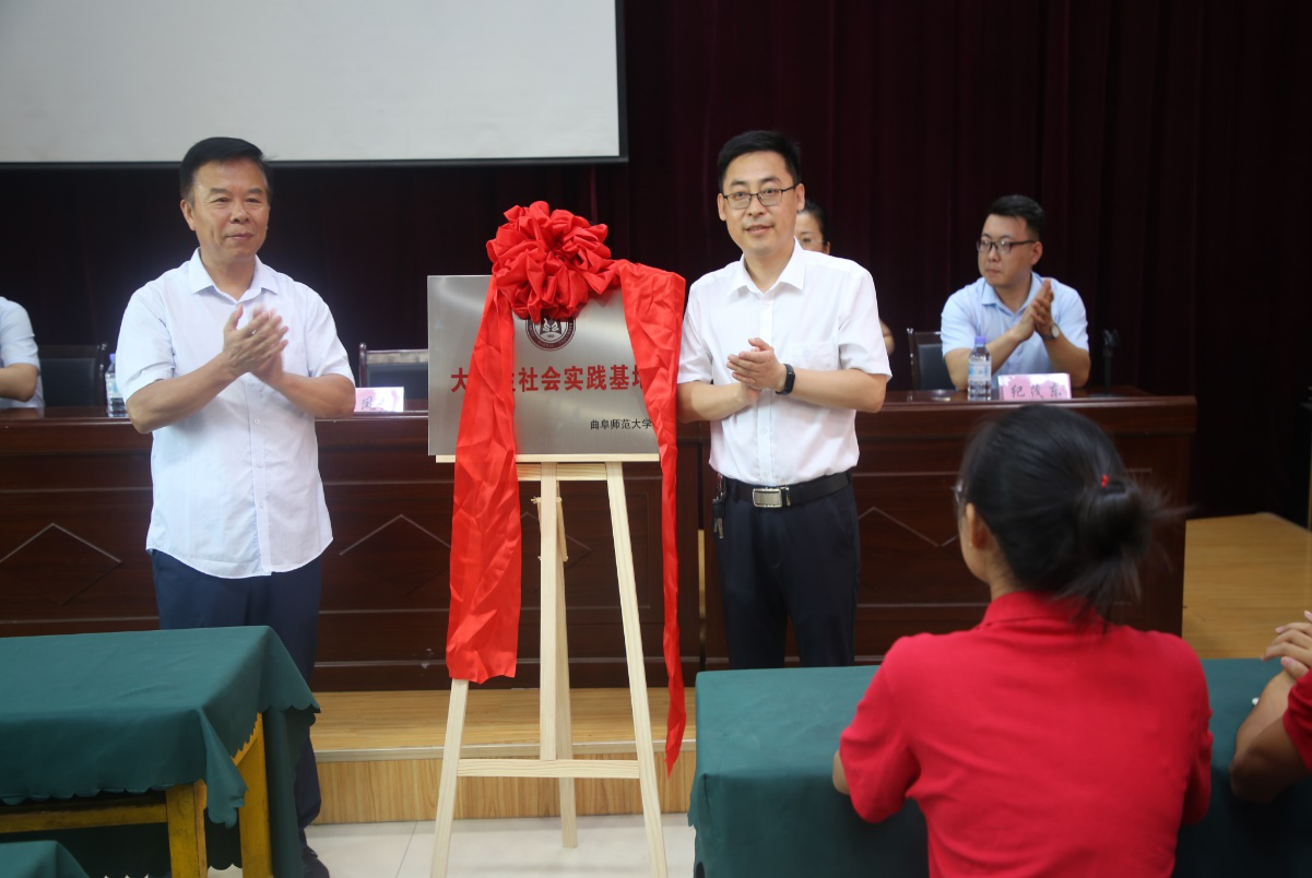 仪式上,曲凤东与李玉华共同为“曲阜师范大学大学生社会实践基地”揭牌。