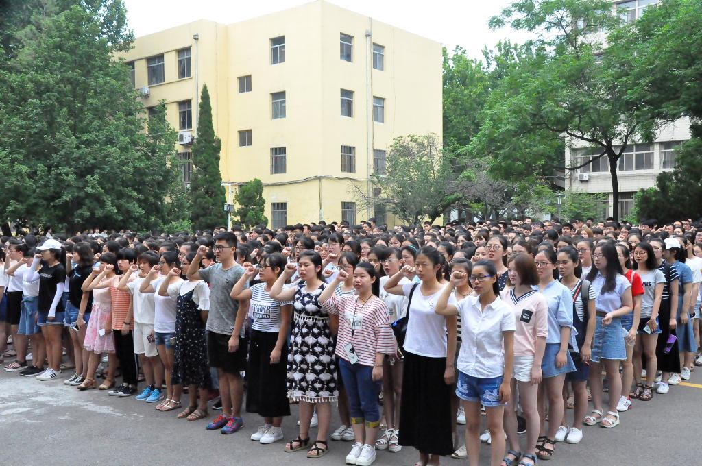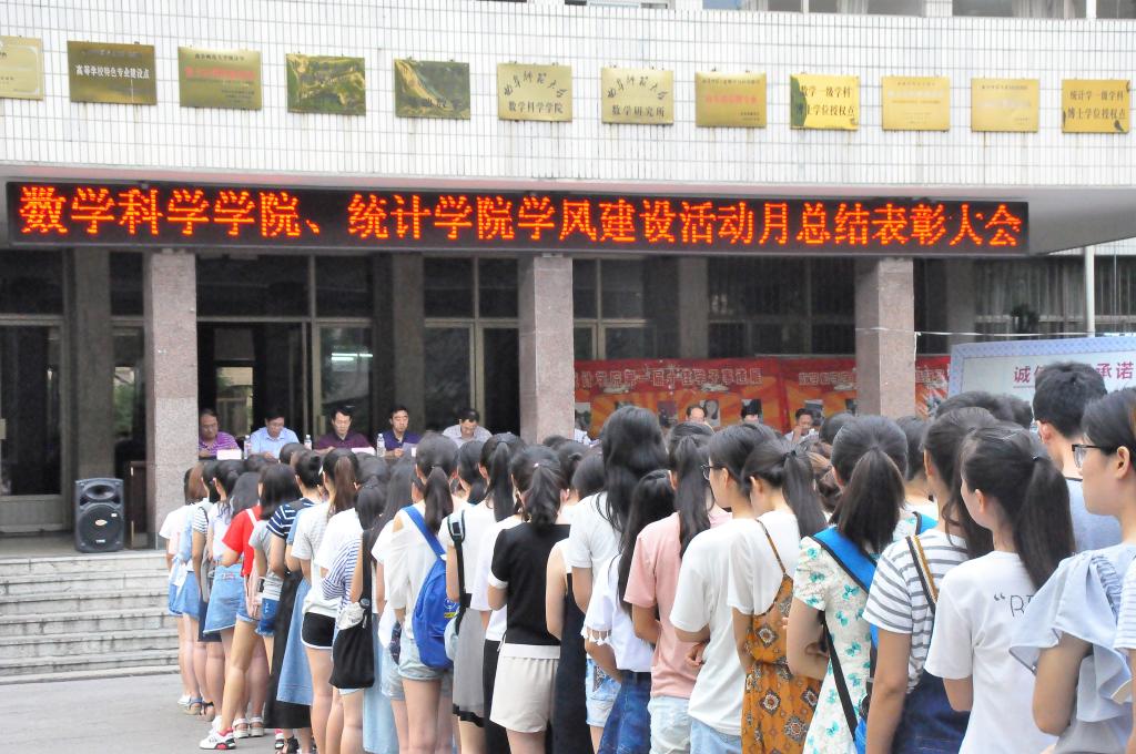 在数学系楼前隆重举行2017年上半年学生建设活动月总结表彰大会,副校长辛杰、教务处、学生工作处、团委、足球资讯网