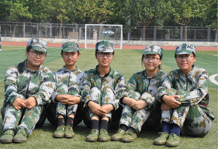 自军训正式开始以来,经过反复的练习新生们已对着装、立正、敬礼、收放马扎、齐步走、正步走、四面转法等队列基本动作驾轻就熟。今天的练习内容为军体拳,虽然烈日炙烤,新生们依然保持着标准的军体拳姿式,没有教官的命令绝不乱动。教官们也一遍遍地强调着动作要领并亲身做示范,耐心教导。坚定的眼神,笔挺的身姿,都在讲述着他们内心的坚持!