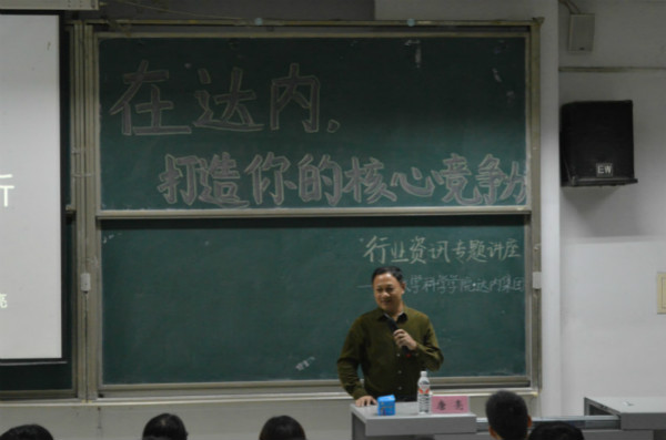 首先,王院长致开场词,对唐亮总监的到来表示衷心的感谢和热烈的欢迎。在同学们热烈的掌声中,唐总监开始了他精彩的演讲,他以自身经历为切入口,向同学们介绍了达内集团的成就和发展趋势。接着,唐总监围绕着"什么是互联网+"、"什么是大数据"、"互联网+和大数据的用途"几个问题为同学们进行了专业讲解。他说,以互联网为代表的IT行业是今天的新兴战略产业,永远都有新机会、永远都有新发展、永远都有新热点是这个行业的三大特点,所以这也是一个充满朝气,非常适合年轻人的行业。而大数据作为预测未来的技术,是我们在新时代的新机会。唐总监说,同学们,让我们在达内,打造我们的核心竞争力!在激烈问答环节后,党委副书记王作茂作总结陈词,对唐亮总监的精彩演说致以了衷心的感谢。王书记指出,自2012年与达内集团合作到现在共同开设2015级JAVA大数据方向专业,足球资讯网