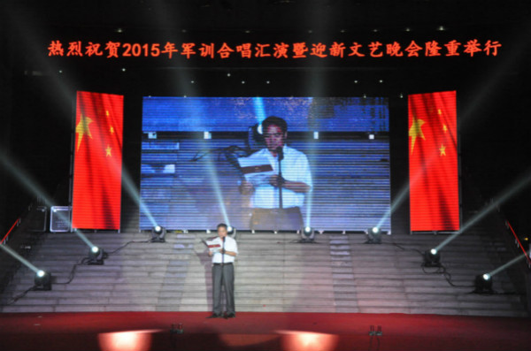 晚会伊始,曲阜师范大学副校长马东骅老师致开场辞,他说,当你们完成报道程序,就意味着你们正式成为一名曲园人,意味着你人生新的篇章正式开启。在军训的过程中,你们整齐的军姿,嘹亮的口号,相互搀扶安慰的身影成为曲园最亮丽的风景线。最后,马校长对我校2015级新生提出了众多期望和要求,祝愿他们度过充实而难忘的大学四年。