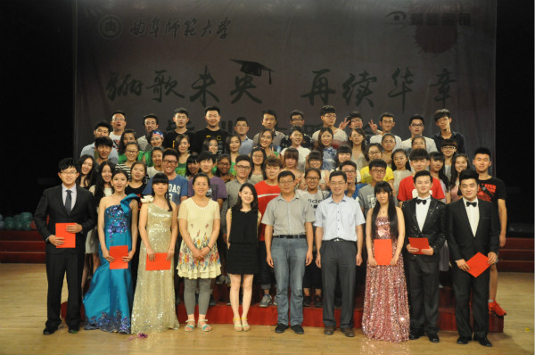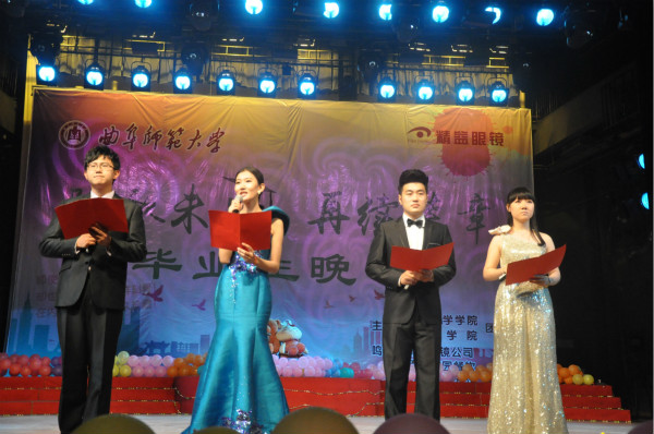 随着红色幕布缓缓升起,南与北乐队带来的开场曲掀起晚会的第一个高潮。在主持人幽默风趣的台词串联下,晚会顺利进行着。悠扬的歌声,舒展的舞姿,小品、相声演员不顾形象的逗乐,还有微信墙上对毕业生们衷心的祝福无一不是今晚的亮点。晚会的又一热潮源自2011级各班班长及老师的走秀,宋玉光老师和刘海东老师精彩的表现更是震撼全场!融洽而浓厚的师生情谊在此得到了充足的表现。继感人肺腑的歌曲《匆匆那年》、《时间都去哪儿了》之后,诗朗诵《我们的大学》借讲述大学四年中发生的故事和变化,以爱之名,对爱告别,为师哥师姐们送去最美好的祝愿。在晚会接近尾声之际,一曲《朋友》情感丰沛地表达了毕业生们对离别的不舍和对未来的期待。借着动人的歌声,演职人员在台上相拥,本次晚会圆满落幕。