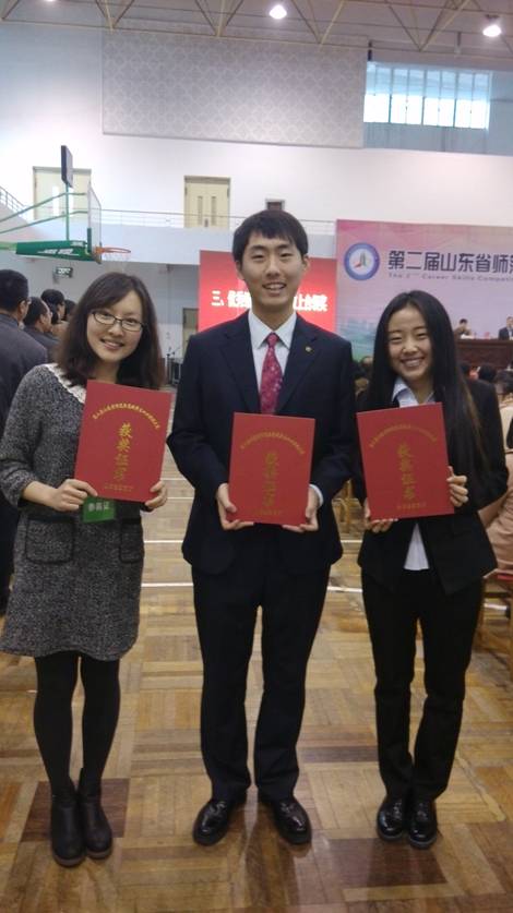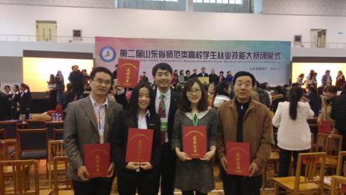 山东省师范类高校学生从业技能大赛从2013开始举办,旨在适应基础教育改革发展对师资培养的需求,从实战角度强化教师基本技能的教学与训练,检验师范生培养质量,全面提升师范类高校学生的教学技能和实践应用能力,充分调动师范类学生专业学习的积极性、主动性和创造性,进一步提高求职技能和就业竞争力,促进教师教育的发展。本届大赛分学前、小学、初中、高中四个学段,其中小学学段包括语文、数学、英语三个学科,初中、高中学段包括语文、数学、英语、物理、化学五个学科,比赛项目包括说课、模拟上课、答辩三个部分。