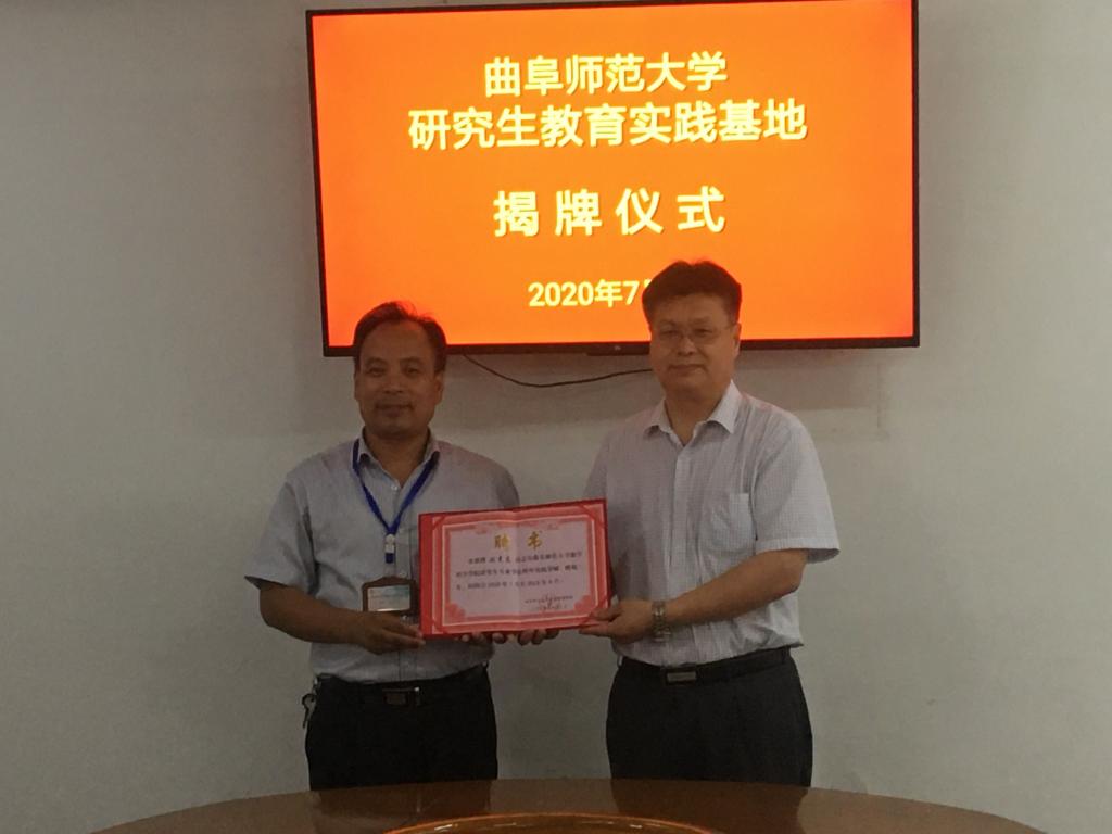 研究生教育实践基地揭牌仪式在曲阜市杏坛中学举行。杏坛中学校长胡滨及聘任的研究生指导教师,足球资讯网