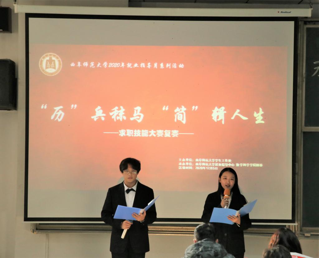 讯(通讯员:高梦瑶 摄影:姚鹏飞)为提高大学生求职技能,丰富求职经验,12月5日下午,曲阜师范大学求职技能大赛复赛于综合楼101教室开展。学工部心理健康部侯萍萍,足球资讯网
