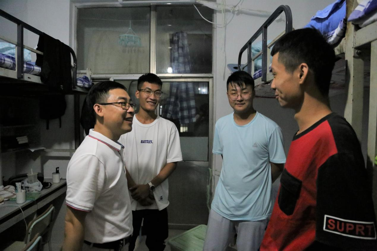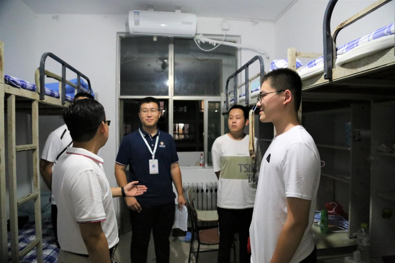 党委副书记曲凤东,辅导员韦宁、高思明、吕瑞源走访慰问了全体新生宿舍,为同学们送去温暖和关怀,与2021级新生进行了亲切交流。