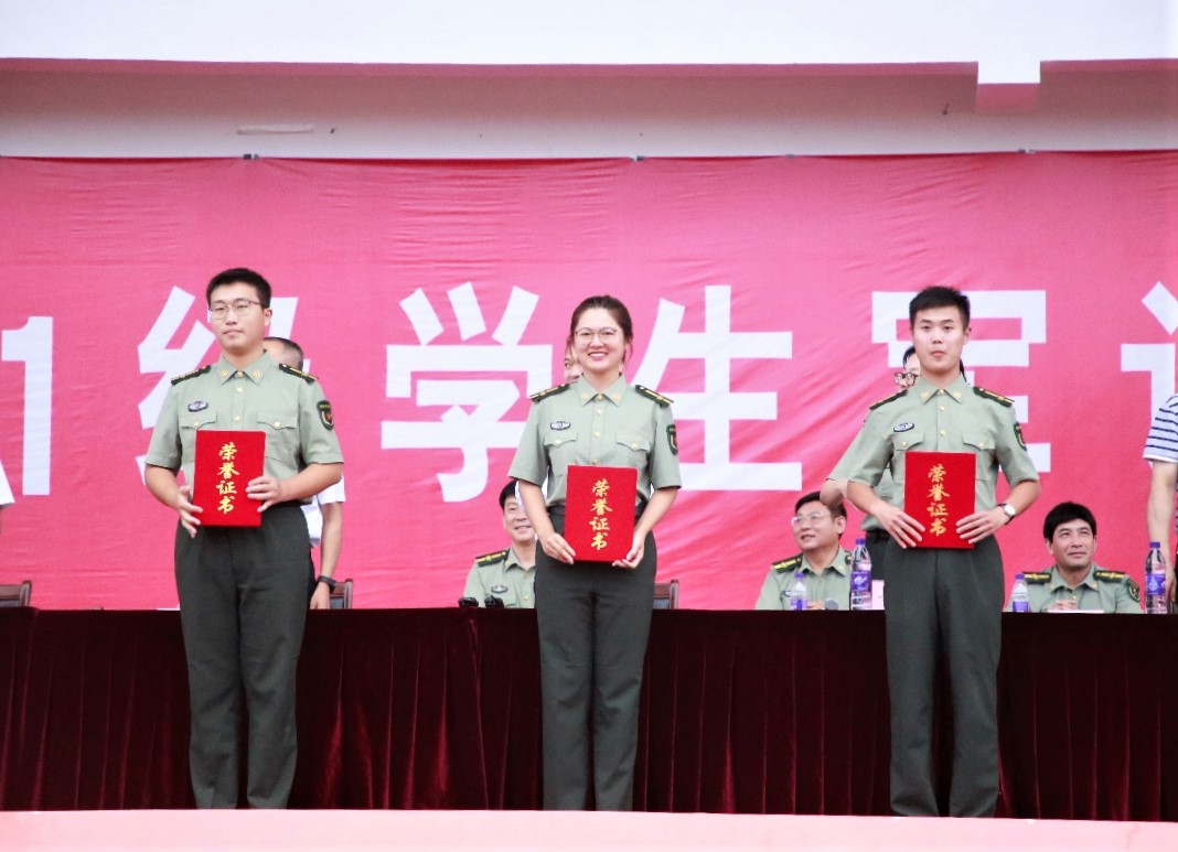 荣获2021级学生军训工作优秀单位和学生军训工作优秀连队等荣誉称号,2021级新生辅导员高思明、吕瑞源二人均荣获优秀指导员荣誉称号。