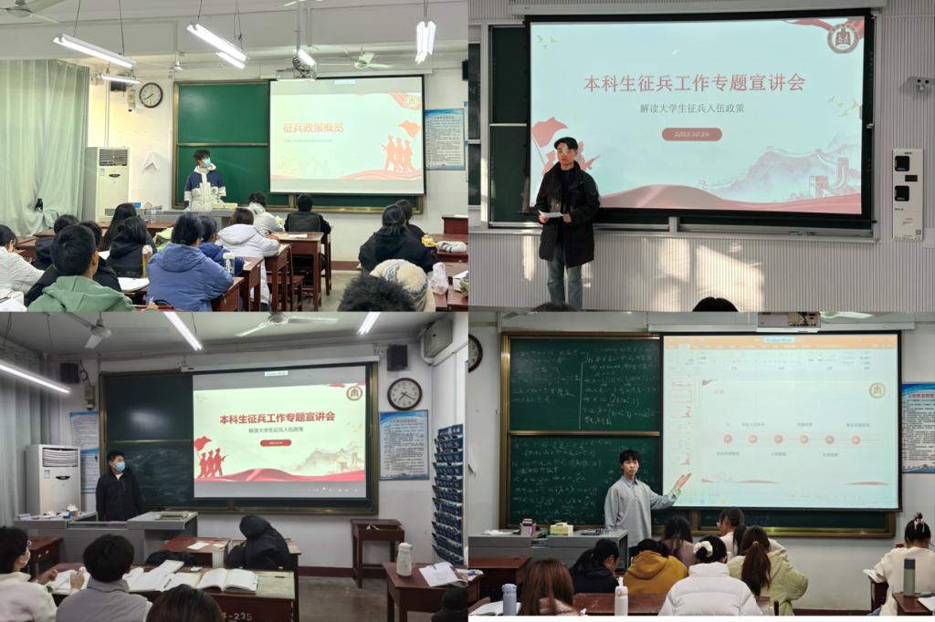 各班级于教室集中开展“投身军旅,逐梦青春”征兵政策解读主题班会。
