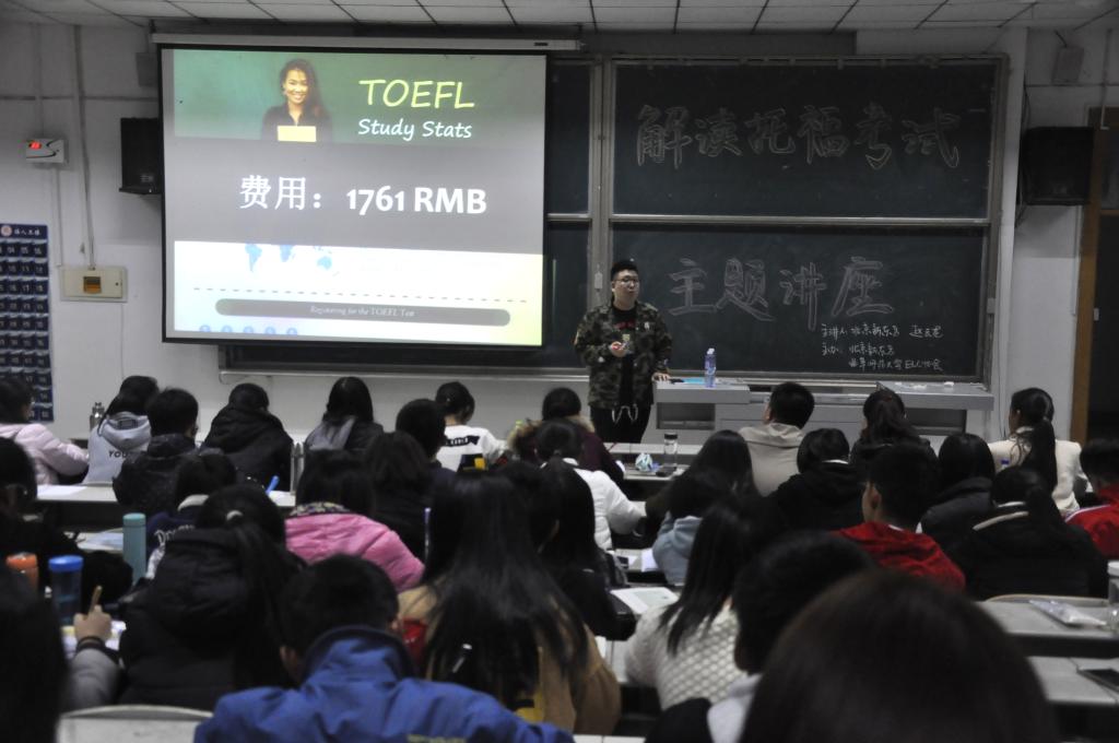 ELC协会特邀请北京新东方资深专家赵云龙为大家开设了此次讲座。讲座中,赵云龙老师依据他多年研究托福考试的经验,与大家分享了他对托福考试的理解,并就考试流程、注意事项、如何准备等为同学们进行了详细的解读。赵老师表示,在日常英语学习中,要注意学习的方法和技巧,注意素材的积累与应用,努力让自己的英语水平达到更高的高度。老师专业而又不失幽默感的语言更是让现场气氛十分活跃。现场同学,都认真听讲,并就重点内容做了摘抄笔记。全场掌声不断随着国际间交流的日益频繁以及就业竞争的日趋激烈,越来越多的人热衷于选择出国留学,而托福考试则是出国留学(美国、加拿大)的必备考试。为了让大家深入了解有关托福考试的问题,足球资讯网