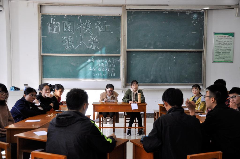 10月29上午9点半,由曲阜师范大学学生社团联合会、曲园棋舍主办的狼人杀比赛在综合教学楼105室顺利举办。