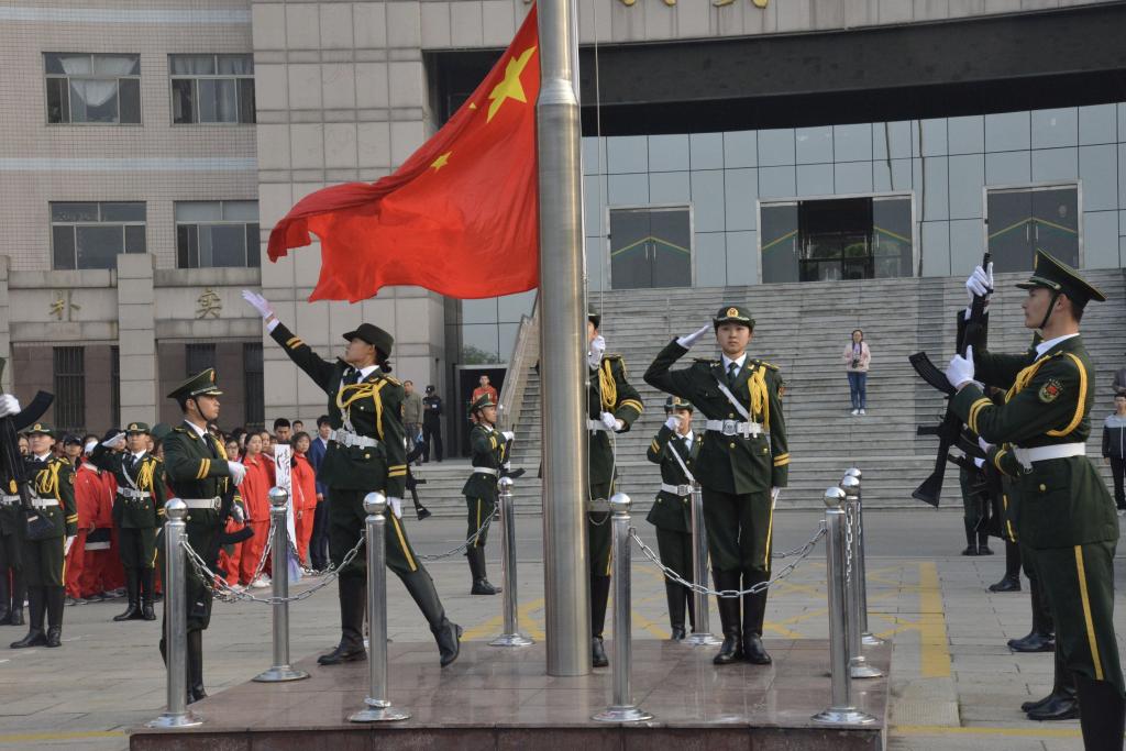 青年学子在孔子文化广场站成整齐的队伍,伴随着学校国旗护卫队成员迈着铿锵有力的步伐,喊着响亮的口号向国旗杆走来,五星红旗在雄壮的国歌中冉冉升起。随后面向象征热血与青春的团旗,我校学子举起右拳,发出“为共产主义而奋斗!”的誓词,表达了曲园学子不负先辈荣光,不忘初心,砥砺前行的坚定意志,铮铮誓言响彻曲园 。