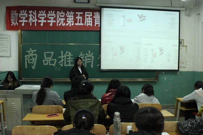 团委主办,学生会就业实践部承办的商品推销大赛决赛在数学教学楼108教室成功举办。