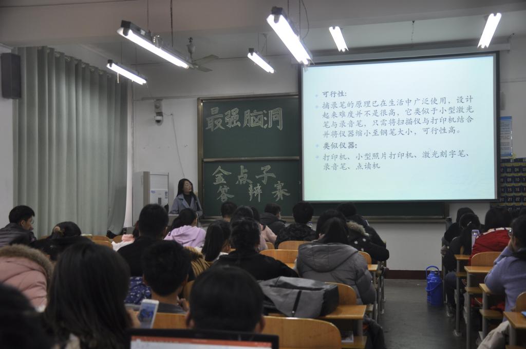 12月22日下午2点半,由足球资讯网 团委主办的最强脑洞——金点子答辩赛在教学楼104教室成功举行。