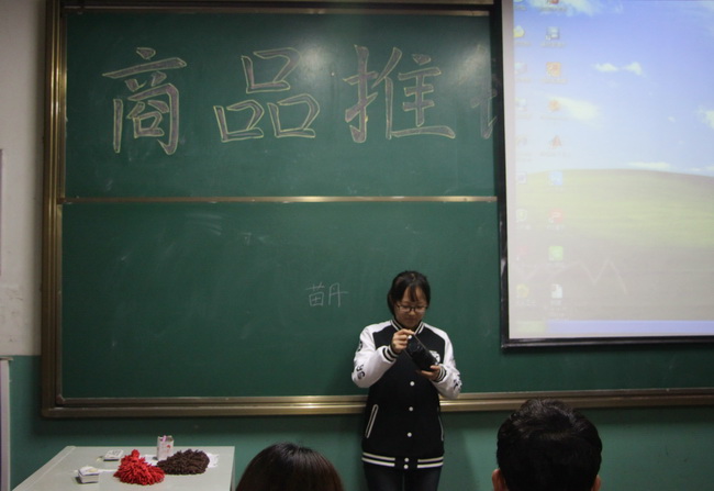 比赛伊始,主持人宣读了比赛流程和评分细则。随后参赛选手按抽签顺序依次推销自己的产品,评委进行提问,待选手回答后打分点评。商品推销过程中,选手们精神饱满,准备充分,诙谐幽默的语言和精彩独特的推销方式赢得评委和观众们的阵阵掌声。比赛最后于晓清对选手们的表现进行了总结,主持人公布了比赛成绩并宣布前十名同学将进入决赛。