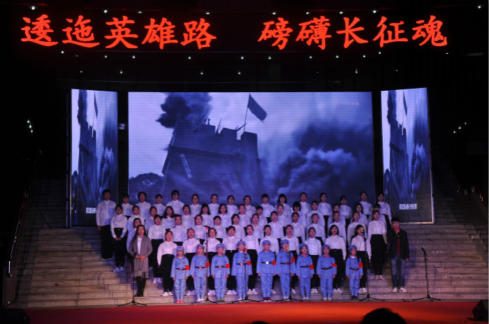 七点,晚会正式开始,马东骅致开场词,他饱含激情地带领大家回眸了长征历史,并对全体师生提出了弘扬长征精神的期许。本次晚会主要分为踏上征途、雄关漫道和丰碑永矗三个篇章,每一篇章都有精彩的节目和视频。参加演出的教职工和同学们通过合唱、舞蹈、朗诵等表演形式重温红色经典,讴歌长征精神。节目或严肃庄严或激情澎湃,扣人心弦,表演者们慷慨激昂的朗诵和振奋人心的演唱充分展示了长征这一豪气万丈的锦绣华章,让现场观众如痴如醉,掌声连连,赞叹不已!