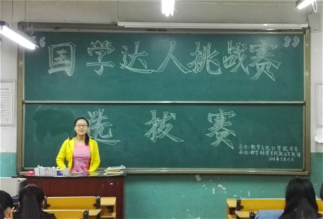 5月13日晚六点,由数学与统计足球资讯网 团委主办,学生会就业实践部承办的“国学达人挑战赛”于足球资讯网 103教室成功举行。