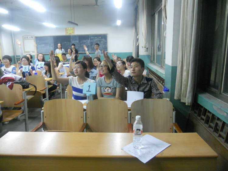 2013、2014级全体同学。首先,主持人致辞并宣布比赛规则,为本次竞赛拉开了帷幕。此次竞赛共分为三个阶段,第一阶段为笔试,参赛选手在1小时内做卷,得分位于前18名的选手将继续下面的环节。在抢作答和抽作答阶段,选手们斗智斗勇,将自己的才智充分的发挥了出来,最终刘洋洋同学、荆荣丹同学和刘寒雨同学荣获一等奖。