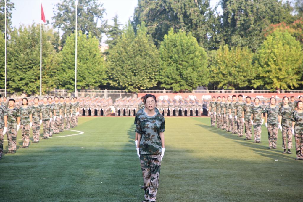 伴着雄壮的义勇军进行曲,五星红旗冉冉升起。一支支方队以崭新的面貌接受检阅,整齐的步伐是他们的成绩,响亮的口号是他们的誓言;黝黑的皮肤,坚定的眼神,无畏的气势代表着他们的成长。军体拳方队势如奔雷,擒敌拳方队锐不可当,心理健康操方队刚柔并济,内务方队干净利落,定向越野方队健步如飞,剑术方队表演震撼让人热血沸腾。标兵连配合方队的变换,摆出“70”、“听党指挥忠于党”、“学而不厌诲人不倦”等字样,军训教官带来的倒功格斗和战地救护表演更是赢得现场阵阵欢呼,他们摔打摸爬,铁骨铮铮,尽显真功夫。