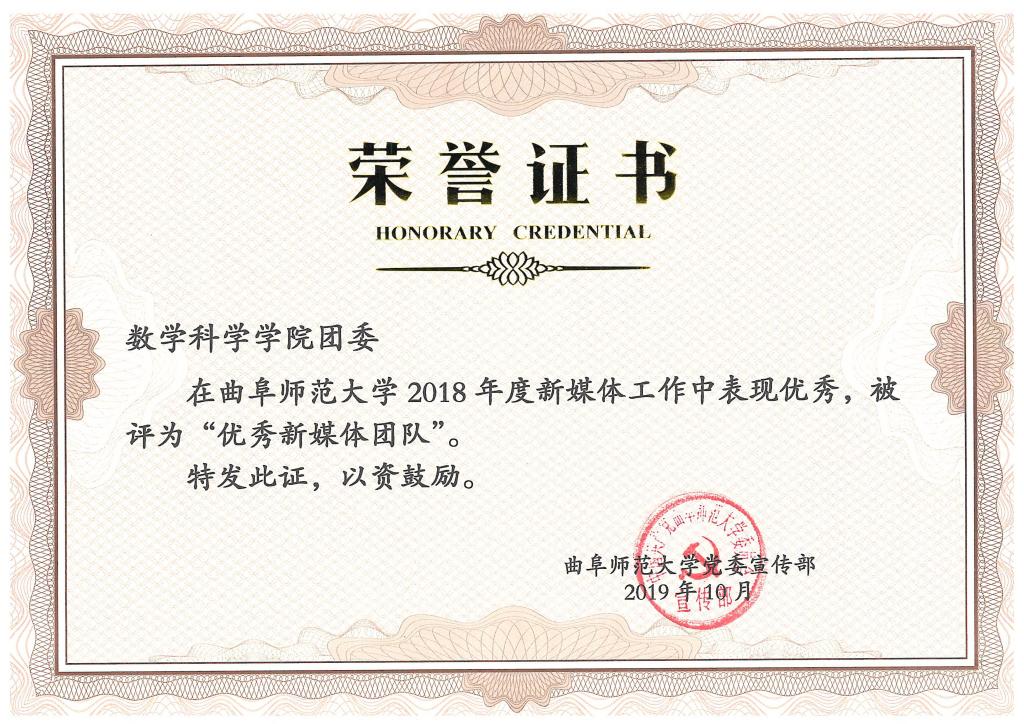 近日,曲阜师范大学党委宣传部对学校2018年度新媒体平台工作先进个人、优秀团队、优秀指导教师、最具影响力新媒体平台等进行了评选表彰。足球资讯网