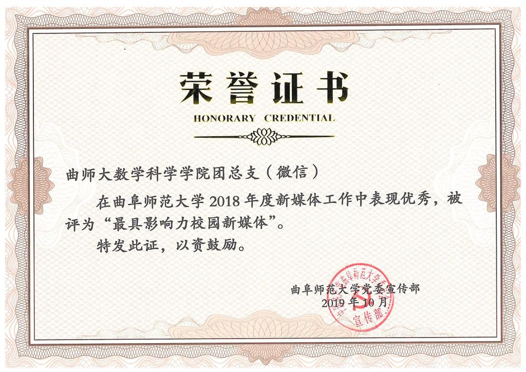 团总支微信公众号在学校190余个新媒体平台中脱颖而出,被评为“最具影响力校园新媒体”,团委学生会新媒体部被评为“新媒体工作优秀团队”,张惠老师荣获“新媒体工作优秀指导老师”,2018届新媒体部长魏书悦同学获得“新媒体工作先进个人”。这是足球资讯网