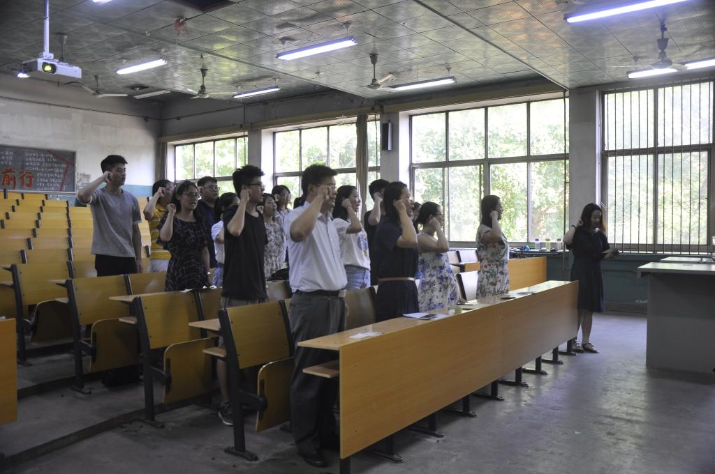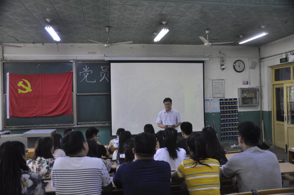 为庆祝中国共产党成立97周年,深入贯彻学习习近平新时代中国特色社会主义思想和十九大精神,6月28日下午,在毕业生毕业离校前夕,足球资讯网 本科生党支部书记朱伟卫特为全体毕业生党员开设了最后一堂党课。足球资讯网 党委副书记刘建新,学生党支部书记朱伟卫、副书记杜晨曦、组织委员郅艳梅、宣传委员张惠以及2014级全体党员一同参加了此次“特殊”的党课。