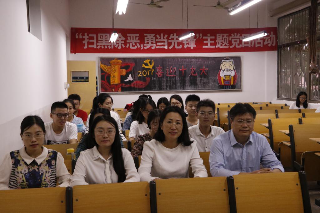 活动伊始,朱伟卫老师带领全体本科生党员学习了《关于在扫黑除恶专项斗争中进一步发挥党员先锋模范作用的通知》,并紧紧围绕"扫黑除恶,勇当先锋"与在场同学进行了深入交流。她强调,广大党员要提高政治地位,坚定不移的打赢扫黑除恶这场专项斗争,在场的同学们应时刻谨记自己的党员身份,始终保持共产党人的政治本色,充分发挥党员的先锋模范作用,积极参与到扫黑除恶专项斗争中去,带头遵纪守法,以身作则,发挥党员的模范表率作用,为扫除黑恶势力奉献自己的一份力量。