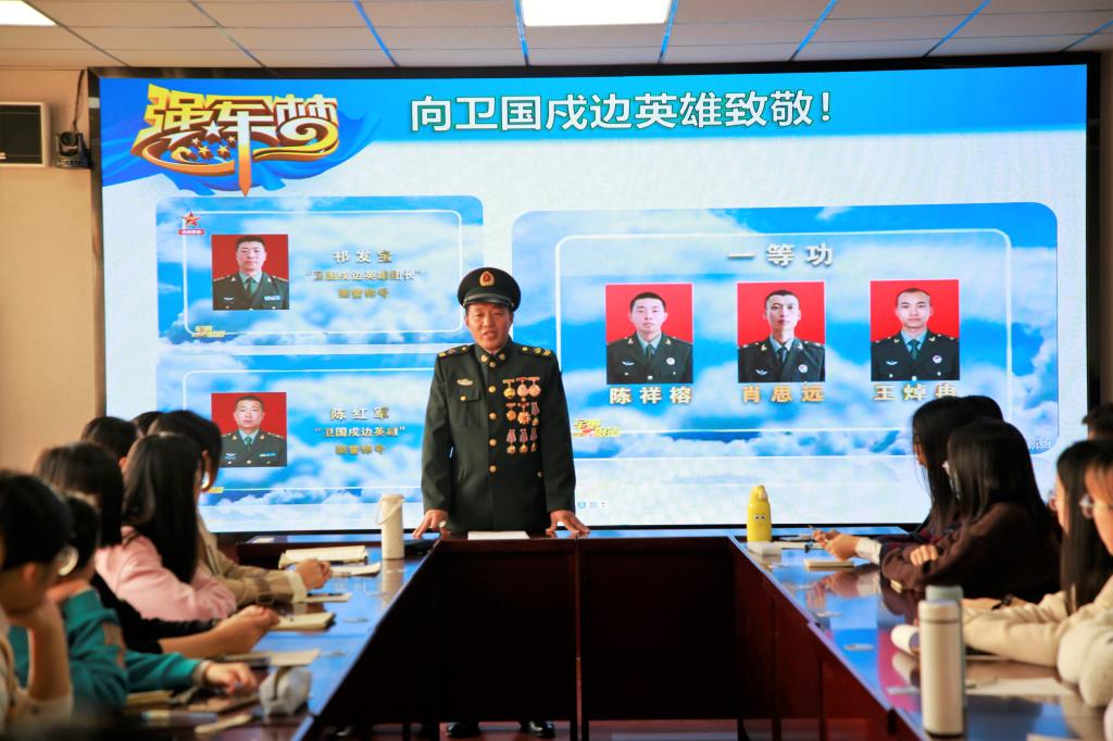 首先,张建军同志以他在西藏服役16年的军旅生涯,满怀深情地介绍了边防官兵们当初相对艰苦的生活条件和战友们的为国戍边的奉献精神,并且以2020年6月的中印加勒万河谷边境冲突事件为例提醒同学们“国虽大,忘战必危”的道理,深切缅怀在本次中印冲突中不幸牺牲的英雄烈士们。守护在我国西藏边境的战士们在高原苦寒地区,面对外来的入侵者,他们奉献出自己的青春甚至是生命,坚定守护着祖国的每一寸土地,保证中国国土不被外敌侵犯。强国必须强军,军强才能国安。巩固国防和强大军队是新时代坚持和发展中国特色社会主义、实现中华民族伟大复兴的战略支撑。结合一个个实例和一段段历史,张建军同志的报告让同学们再一次体会到:哪有什么岁月静好,不过是有人替你负重前行;万家团圆,是因为有人用生命守护国家的安宁。为有牺牲多壮志,敢教日月换新天。今天,祖国繁荣富强,社会安定和谐,人民安居乐业,正是用无数英雄先烈们前赴后继流血牺牲换来的。