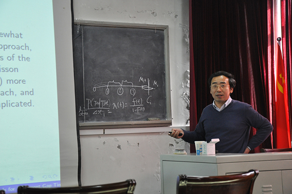 报告厅作了题为“A Class of Transformed Hazards Models forRecurrent Gap Time”的学术报告。