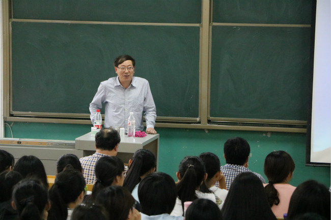 杨孝平教授从三个方面生动形象地介绍了数学教学和数学教师的作用。杨效平教授分别从教育的理念和数学是什么介绍了对数学教学的认识,并指出对数学教学的认识是突出基础、抓住本质、学会简单、学会思考、学会提问。谈到对数学教师的认识,他从师者之道、数学教师的人文情怀、数学教师之能力发展三方面娓娓道来。最后在教师的作用方面,他指出教的原则从思想与方法入手,让学生学会思考和“问问题”,且教且学—教学互融与相长.对学生,要学会:容忍异想天开,容忍错误,容忍“不严密”。对教学,注重课程之间、章节之间、知识之间的关联,教师须在群体活动之中,相互切磋,取长补短,不虚美,不隐恶,坦诚相见。教师应有开放的学习心态。独学而无友,则孤陋寡闻。