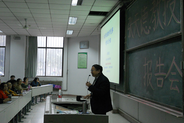 的参赛同学详细介绍了全国大学生数学竞赛的各项事宜,在报告过程中,张天德教授思路清晰,语言幽默,并且不停地与周围的老师、同学交流其中的疑难问题。最后他祝愿我校所有参赛选手都能取得好成绩,再创佳绩。