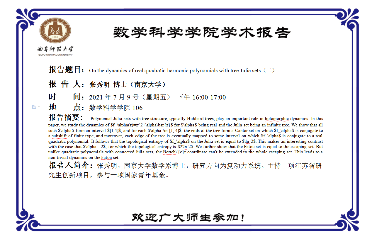 【6月26日】2021年曲阜师范大学算子代数研讨会