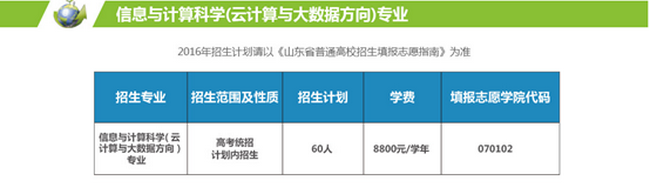 招生链接:曲阜师范大学 信息与计算科学(云计算与大数据方向)招生简章;