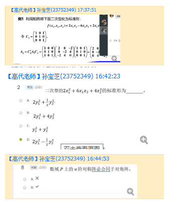的彭桢老师的在线课程,采用小组学习的方式,让小组长及时反馈各组员的学习进度。并利用QQ群及时答疑学生提出的问题。采用教务处提供的长江雨课堂平台提前发布带有网上配套的讲课视频的课件和公告。最后用钉钉及手写板实现直播教学。