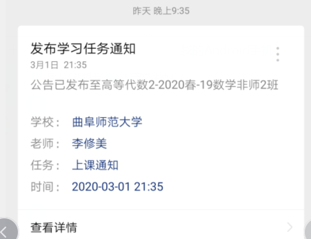 图4 雨课堂发布上课提醒